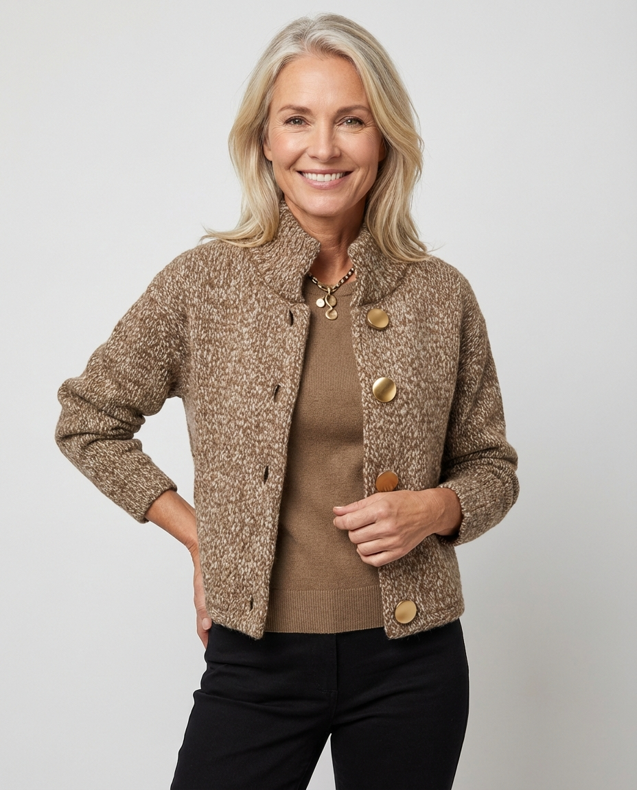 Some layers help you feel grounded and polished the moment you put them on. Lisa was designed for women who appreciate structure that feels gentle, and elegance that never feels forced. The fabric rests smoothly on the body, offering light warmth and a sense of calm coverage without stiffness. The shorter length and thoughtful details create a balanced silhouette that feels intentional yet easy. It’s the kind of jacket you reach for when you want to feel put together, comfortable, and quietly assured — without effort.