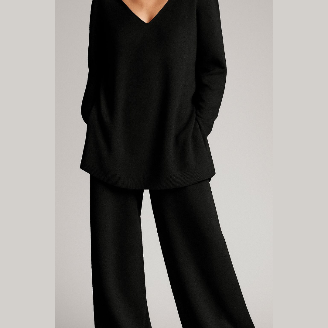 The knit feels smooth and gentle, offering warmth without weight and structure without stiffness. The pieces move easily together, creating a feeling of balance and ease from morning to evening. It’s a set you reach for when you want to feel comfortable, put together, and quietly confident — with no effort required.